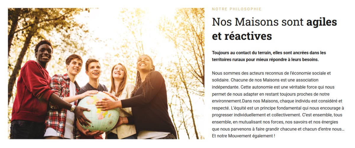 Une Maison Familiale Rurale (MFR) est une association loi 1901 issue de l’éducation populaire et du mouvement familial  et qui a l’Humain au cœur de ses valeurs. L’Education aux Mondes et aux Autres (EMA) est une base du projet des associations. Une MFR est une association laïque de l’économie sociale et solidaire où chacun peut trouver sa place et avoir un appui pour trouver sa voie personnelle et professionnelle. La MFR est gérée par un conseil d’administration composé de représentants des familles des apprenants, des anciens élèves devenus professionnels, de maîtres de stage ou apprentissage, de personnalités publiques ou de structures privées. Une MFR propose un cadre sécurisant pour suivre des formations selon la pédagogie de l’alternance : 50% du temps à l’école 50% en stage ou en emploi. Les apprenants passent les mêmes épreuves d’examen qu’un lycéen ou un étudiant dans un cursus scolaire classique mais le volet professionnel est vu sur l’entreprise grâce à l’appui de tuteurs professionnels et revus en théorie à la MFR.